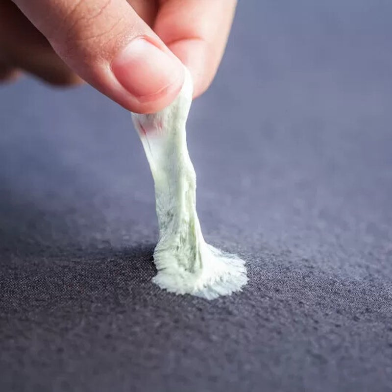 U beschadigt hier alleen de stof mee en haalt de kauwgum er uiteindelijk niet uit!